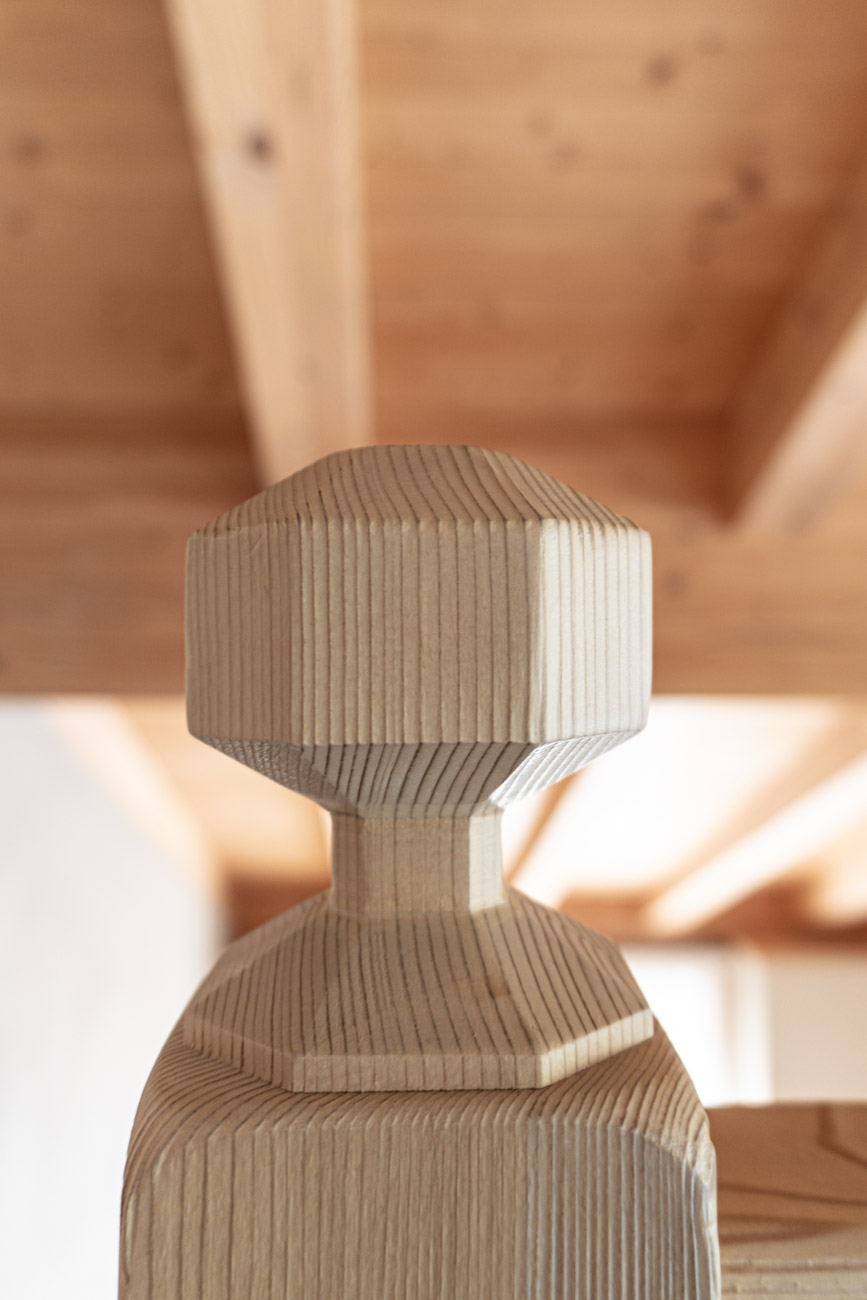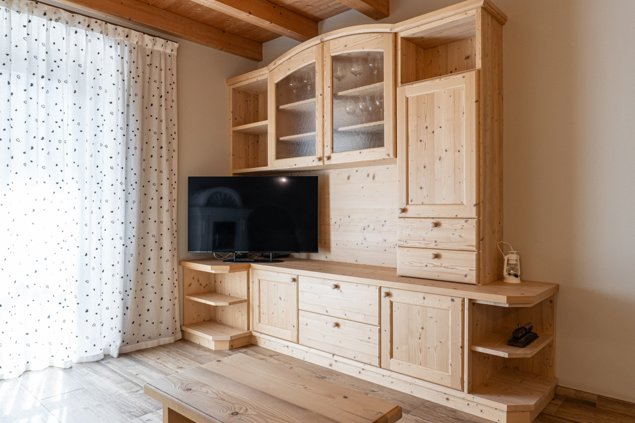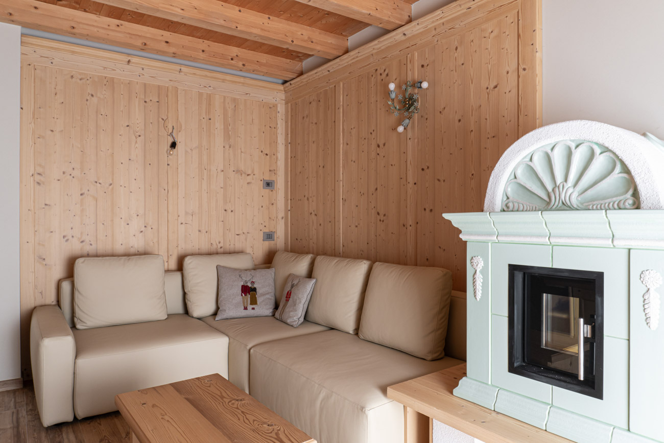 La camera padronale a soppalco si distingue per l’atmosfera fiabesca: ospita forme articolate, decorative e sinuose, unite a preziosi inserti in cristallo. Il pavimento è in rovere rustico e gli arredi in abete anticato. Anche il parapetto della scala d’accesso presenta lavorazioni dal gusto romantico.
